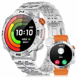 LIGE Smartwatch Herren mit Aod Mode,1.43” Amoled HD Touchscreen Fitnessuhr IP68 Wasserdicht Schrittzähler mit 110 Sportmodi/45 Tage Batterie/Schlafmonitor Aktivitätstracker für iOS Android,Silber (-61% Rabatt)